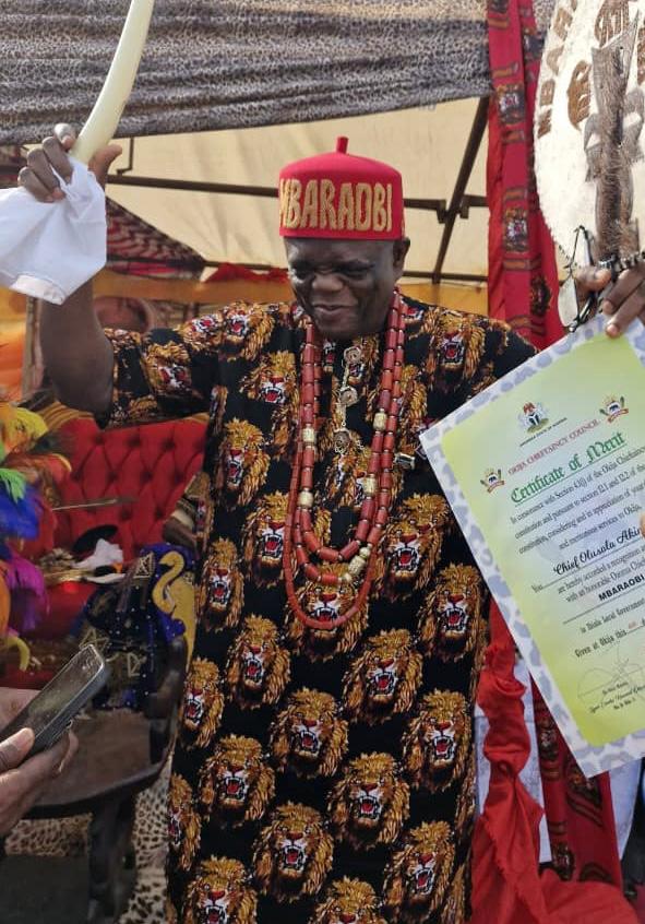 Akinsiku who is the Chairman, KOK Visibility Edge Lagos, Lagos, bagged the title Mbaraobi of Okija while Sir Chijide was conferred with the Ozuone of Okija title.